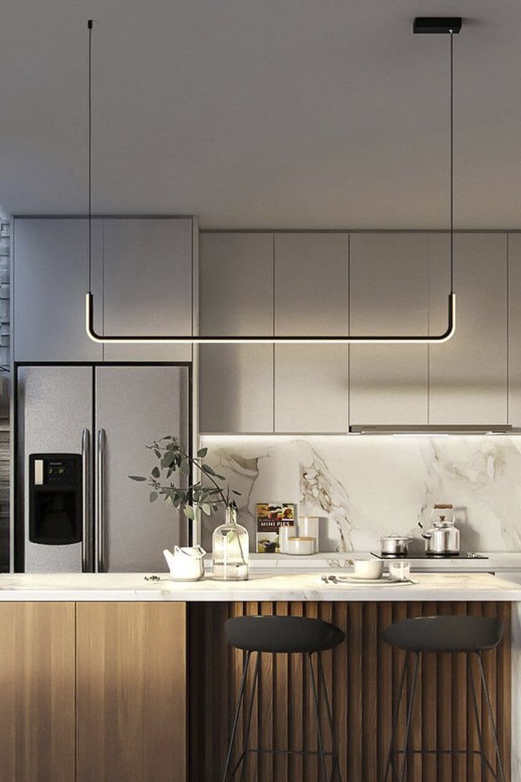 როგორც წესი, სამზარეულოში ნეიტრალური განათებაა რეკომენდებული, თუმცა თუ ავეჯი შედარებით ცივ ტონებშია გადაწყვეტილია, შეგიძლიათ, მას ასევე ცივი განათება ეფექტურად შეუხამოთ.
