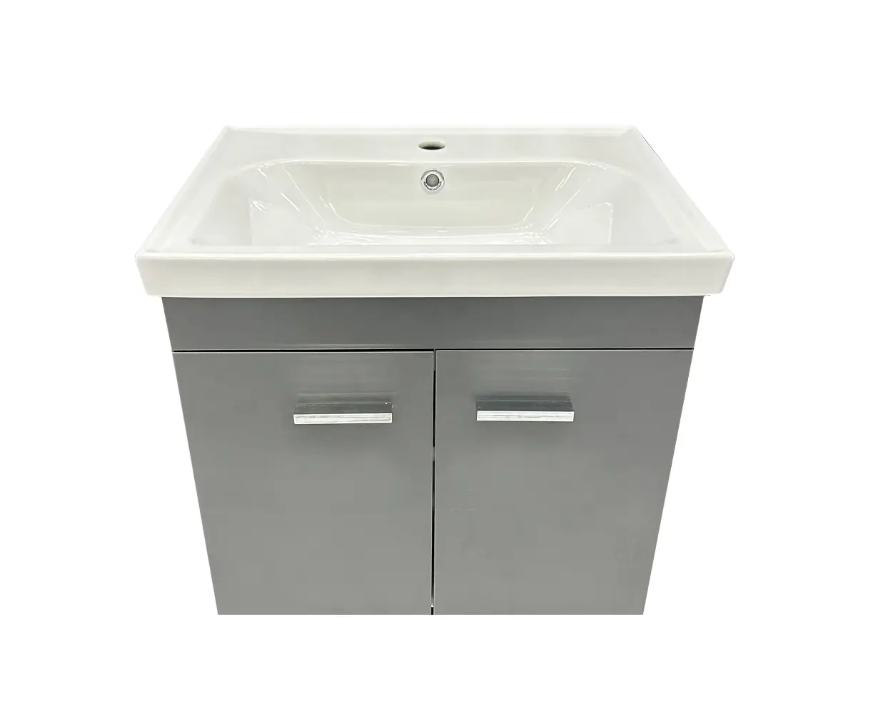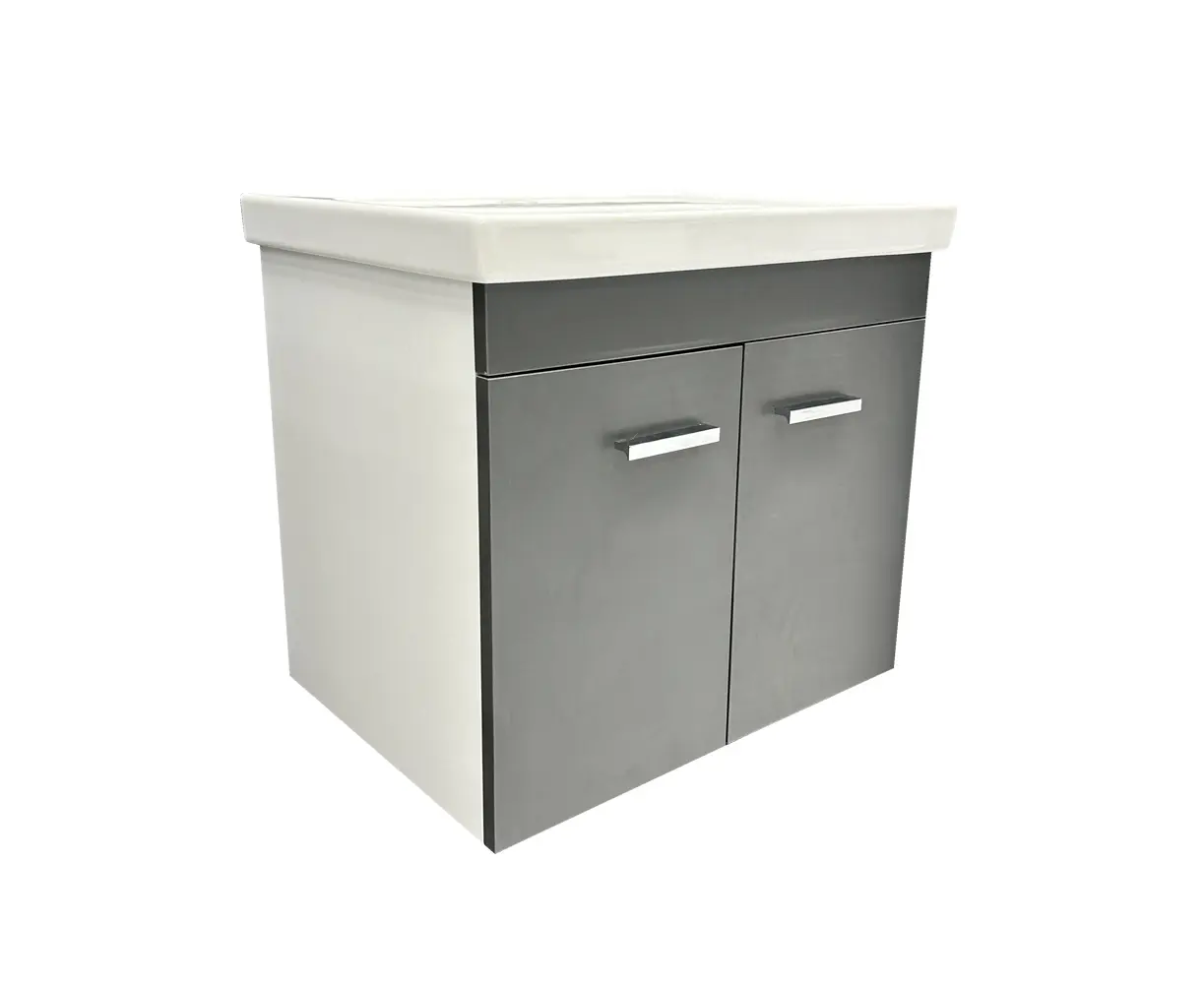Denko Terra 60 is a sleek, modern vanity designed to bring style and practicality to your bathroom. Its compact form makes it suitable for both small and medium-sized spaces, while the glossy gray finish adds a touch of sophistication and modern flair. The two-door storage offers convenient organization for bathroom essentials, and the included basin perfectly complements the overall minimalist look.Crafted from high-quality moisture-resistant MDF, it ensures durability and long-lasting beauty. The glossy surface is easy to clean and maintains its elegant shine over time. Terra 60 is the perfect balance of design, function, and resilience — a timeless choice for any modern bathroom.