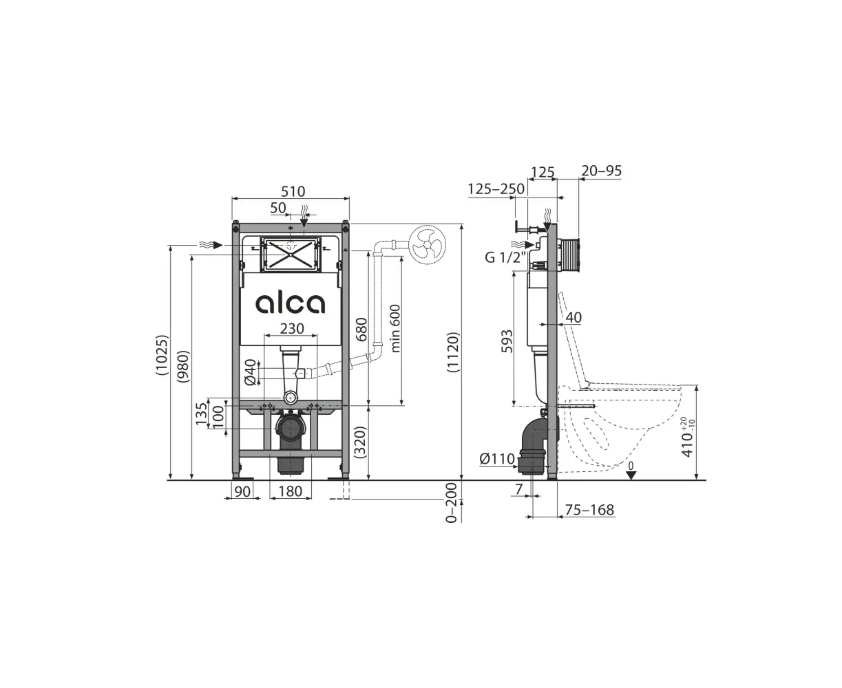 Installation system for suspended toilet Alcadrain AM101/1120 + button M670