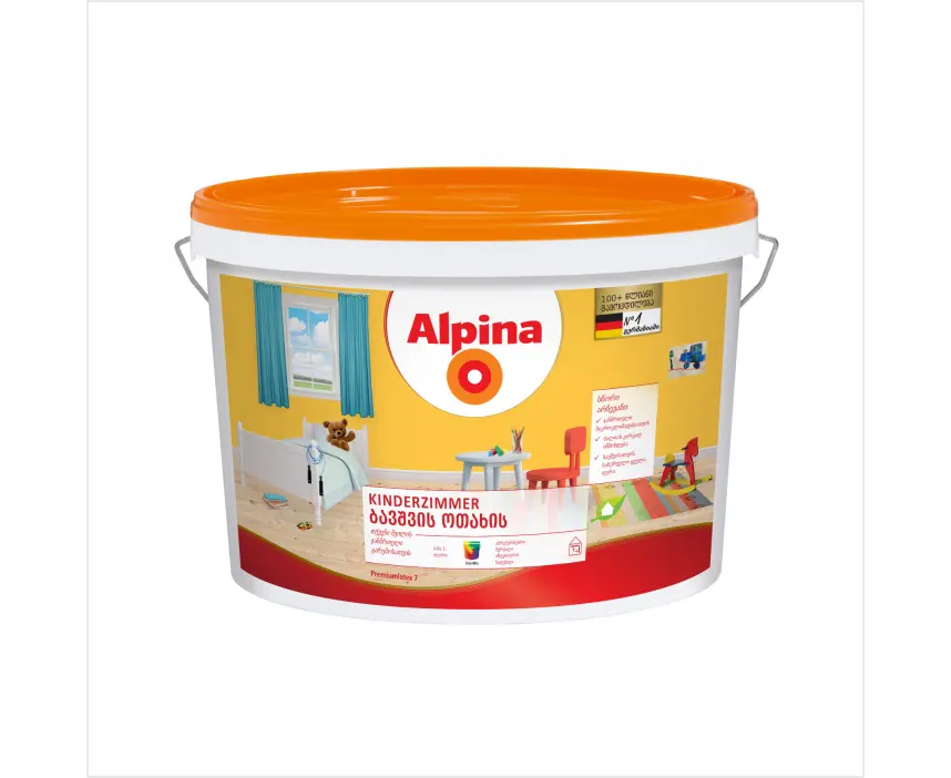 Alpina Kinderzimmer B1 is for the children's room. This is a high-quality paint that can withstand heavy loads and is easy to clean.
