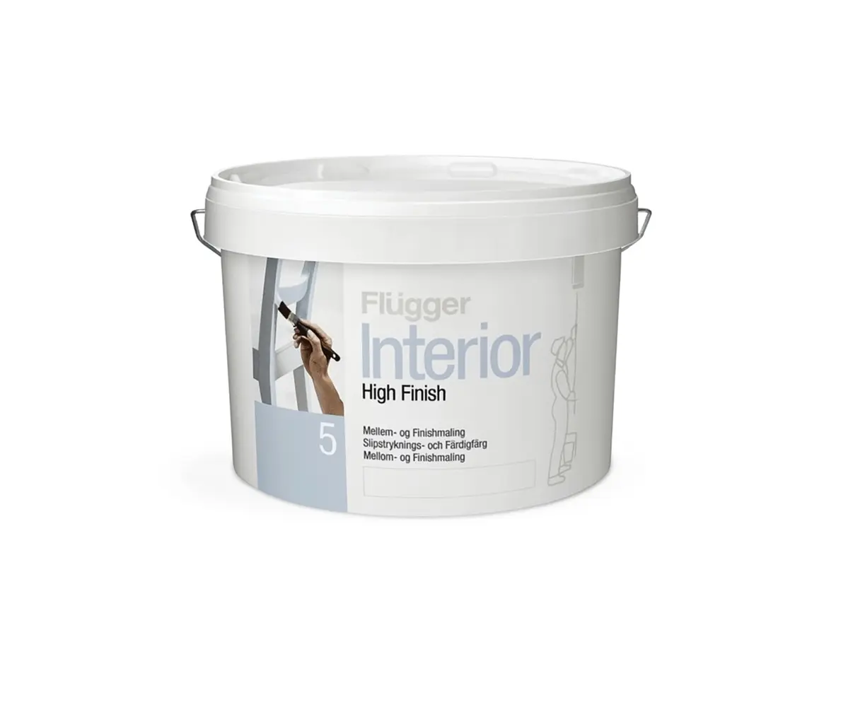 Flugger Interior High Finish 5 – acrylic paint, which simultaneously performs the function of both a primer and a finish. It creates a beautiful matte surface and provides strong adhesion to an already painted surface. It is more durable and abrasion-resistant than other paints with the same gloss level.