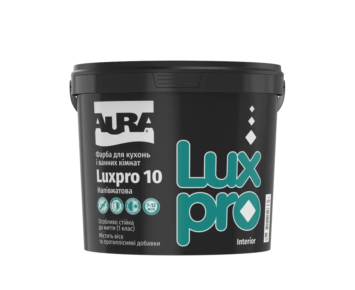 AURA Luxpro 10 is a high-quality semi-gloss acrylic paint, specially designed for covering walls and ceilings in areas with high humidity. It is ideal for bathrooms, kitchens, hallways and public areas where surfaces are subjected to frequent daily cleaning. The special formula of the paint provides a durable and strong coating that withstands frequent cleaning, including disinfectants and detergents. Its composition is enhanced with special additives that protect the surface from fungus and mold, which is especially important in humid environments. AURA Luxpro 10 is easily distributed, gives a smooth semi-gloss surface and is characterized by high hiding power. It reaches its final strength and full wash resistance in 3-4 weeks, after which the surface retains its cleanliness and aesthetic appearance for many years.