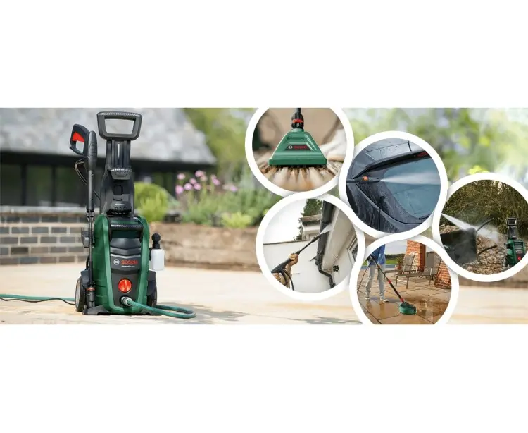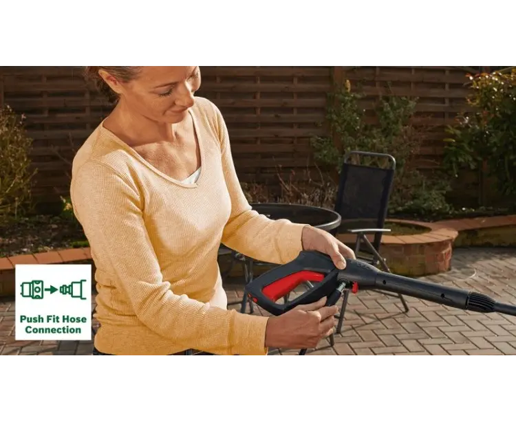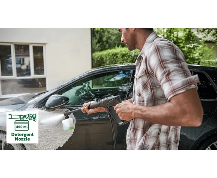 Fast, flexible and easy cleaning. Spray, rotor and jet settings are tailored to the individual requirements of each application. Save time when washing your car with the 450 ml high-pressure nozzle. The retractable handle and large wheels increase portability and ease of storage. It sucks in water from external sources - a rainwater tank. This increases the versatility and portability of cleaning. Two filters increase protection against debris entering the machine.