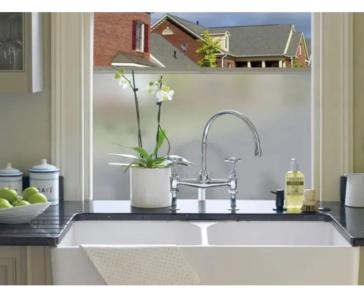 Self-adhesive film to protect windows without the use of curtains from the penetration of bright light, to give a stylish design, as well as for decorative trimming or other practical purposes. Made from a material with a sticking effect, it is attached easily and quickly due to static forces, without using glue. You can use in rooms with high humidity.
