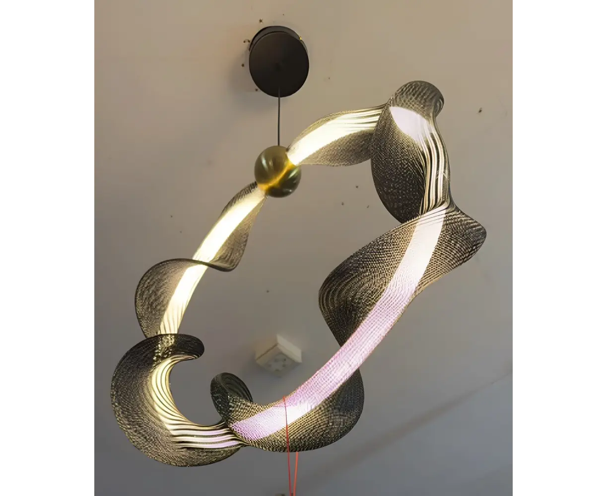 The distinctive lamp is a great choice for those looking for a unique, artistic detail in their interior. The slightly wavy, flexible shape, black metal texture and integrated LED linear lighting create a stunning visual effect. The decorative ball placed in the center further enriches the composition.
