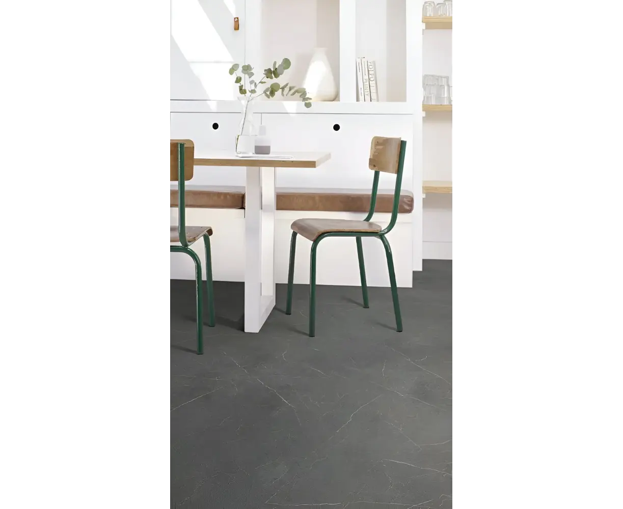 High-quality and durable linoleum, suitable for residential and semi-commercial spaces. It has a black textile backing that evens out the floor surface and reduces noise. The protective surface protects the surface from friction and stains, making floor maintenance easier. It also has an anti-slip element that ensures safe movement.