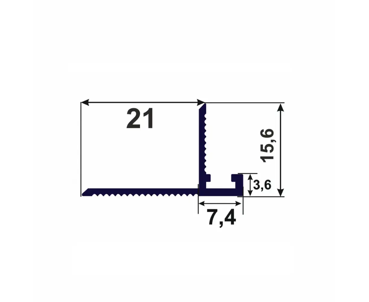 Aluminum anti-plinth A premium quality protective barrier designed for superior durability and aesthetic appeal. With dimensions of 15.6x7.4 mm and a length of 2500 mm, the anti-plinth is ideal for protecting the lower parts of walls or cabinets from damage. Its sturdy aluminum construction ensures long-lasting performance and wear resistance, making it an ideal choice for both residential and commercial applications.