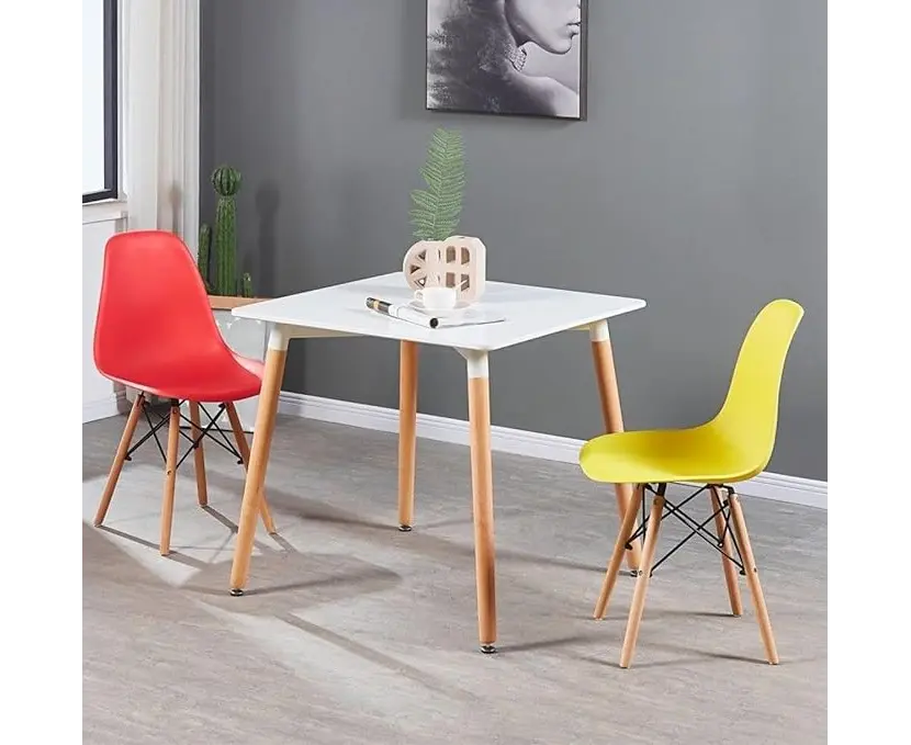 A white table is an elegant and functional piece of furniture that adds freshness and light to the interior of the room. The table has a clean, bright white painted flat surface that gives a clean and light feeling. Its smooth coating creates a natural shine effect and gives the interior a feeling of spaciousness and lightness.