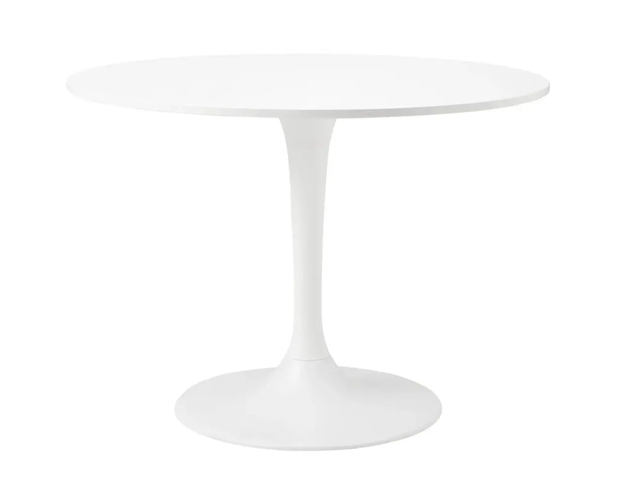 The white round table boasts a smooth surface painted in a crisp, bright white finish that exudes a sense of freshness and cleanliness.