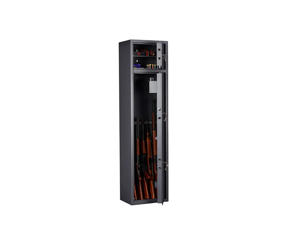 A gun safe is a secure storage container specifically designed for the safe storage of firearms and ammunition. Made of heavy duty material such as steel and equipped with locks to prevent unauthorized access.