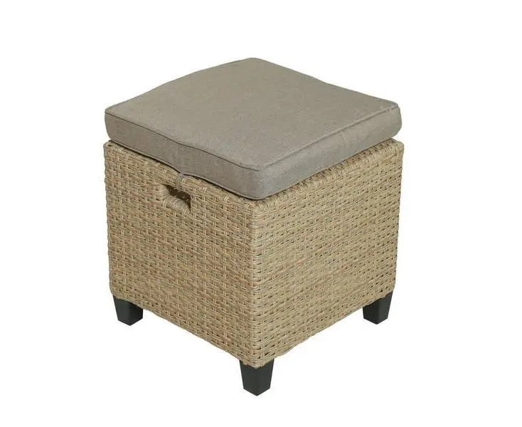 An original and at the same time simple pouffe made of artificial rattan. The color does not fade over time, the removable cushion allows you to use the pouffe as a small table.