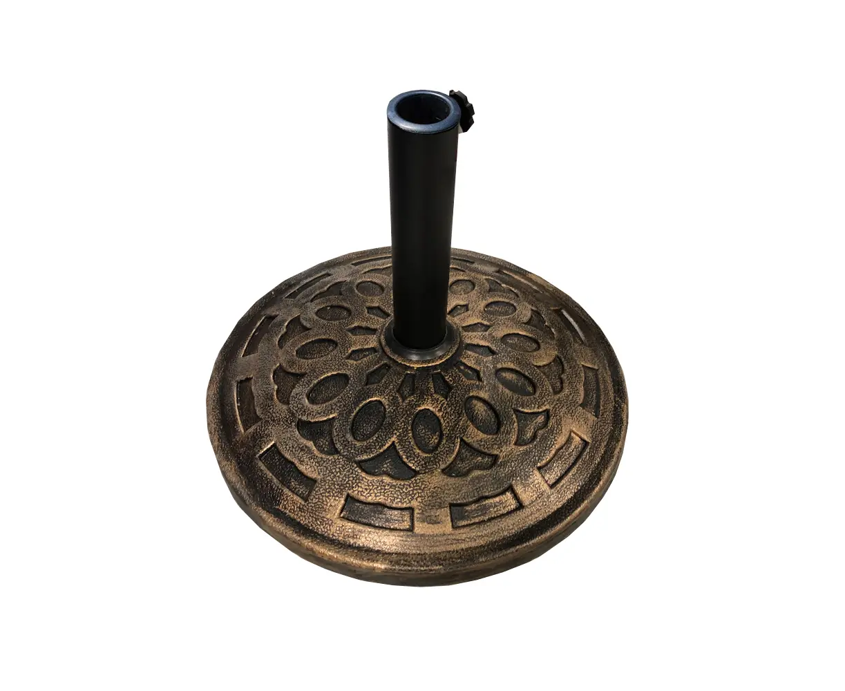Durable and aesthetic, this umbrella stand is ideal for both indoor and outdoor spaces. It features a solid base that ensures stability even in windy conditions. The bronze color and sophisticated design combine functionality and style, making this product a standout element on a terrace, patio, or in commercial spaces.