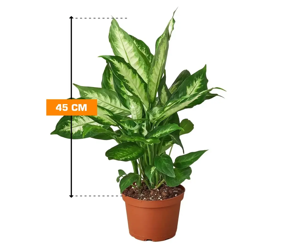 Dieffenbachia is a refined indoor plant known for its lush green leaves with light-colored patterns. It is easy to care for and has excellent air-purifying properties, making it a popular choice for homes and offices.