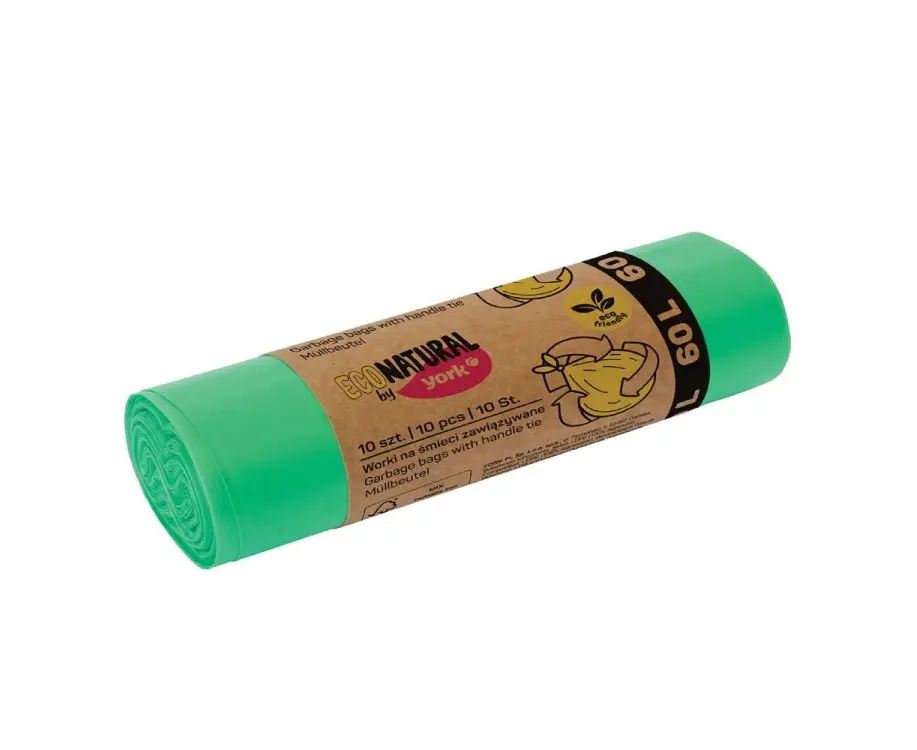 Eco-friendly York ECO garbage bags - they are made of 100% regranulate, a material created during the processing of polyethylene products.