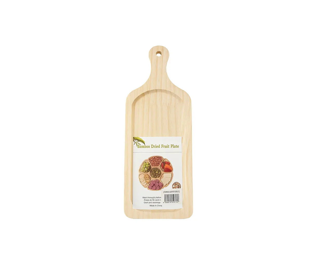 The wooden board with a comfortable handle is perfect for both serving and cutting food. Made from durable and eco-friendly bamboo, it ensures long-lasting use and stability. An excellent choice for both everyday and festive occasions.