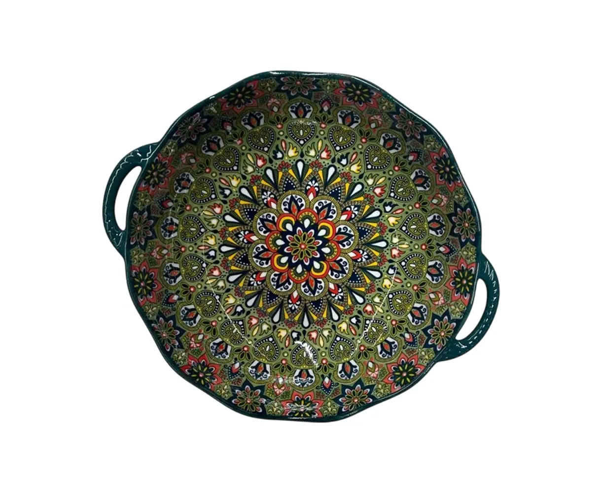 This beautiful plate, featuring a distinctive and original design with a vibrant color palette, is made of high-quality ceramic. It has a glossy surface that is easy to clean and maintains its original appearance. Ideal for both everyday use and for decorating the table on special occasions.