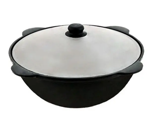 Cauldron is made of cast iron, strong and durable material. Pan can be used on an open fire and in the oven. It is suitable for all types of plates, including induction.