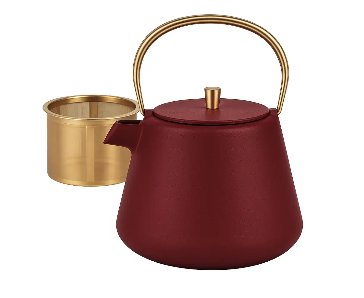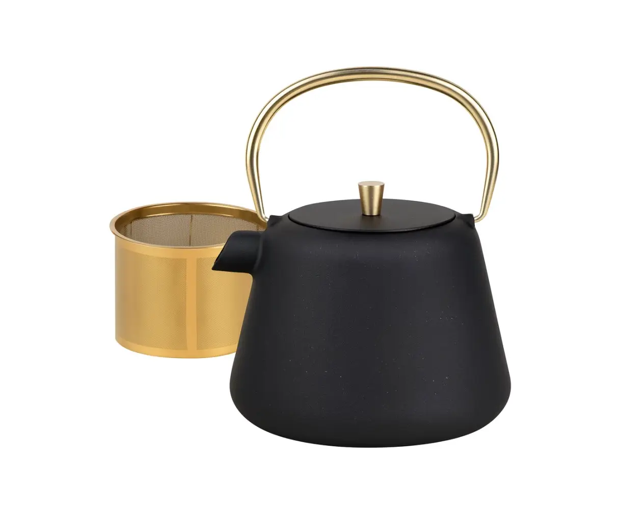 Elegant and durable cast iron teapot – the perfect choice for true tea lovers! Its deep colors and refined design with golden details add sophistication to any interior. The teapot comes with a stainless steel filter, ensuring purity and a rich aroma in every cup.
