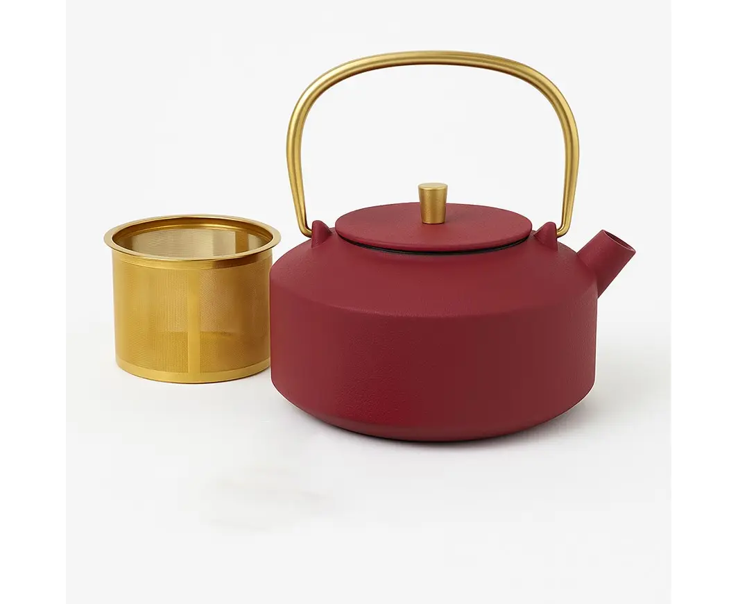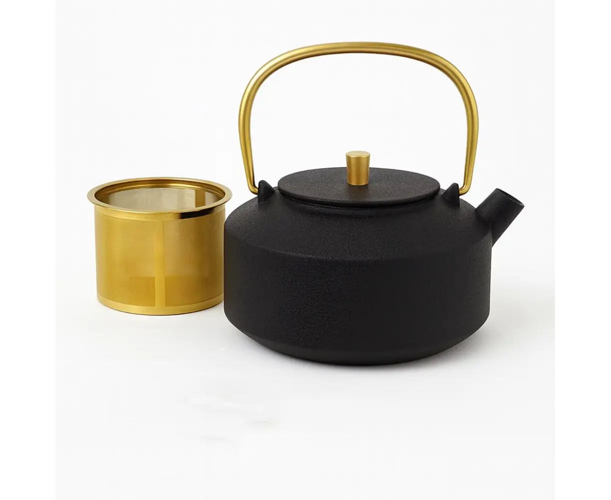 Elegant and durable cast iron teapot – the perfect choice for true tea lovers! Its deep colors and refined design with golden details add sophistication to any interior. The teapot comes with a stainless steel filter, ensuring purity and a rich aroma in every cup.