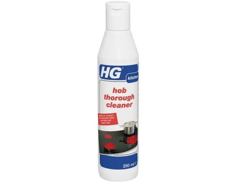 - Apply HG hob thorough cleaner with a cloth and rub the product onto the induction or ceramic hob