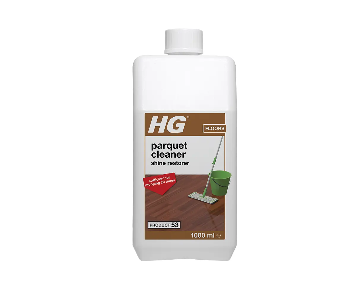 100% safe and powerful parquet floor cleaner.Clean parquet? HG parquet power cleaner is a completely safe yet powerful parquet floor cleaner for the varnish layer on a parquet floor.Also suitable for the removal of all types of polish and other protective films. 1 litre diluted is sufficient for approximately 25 - 50 m2, undiluted 10 - 15 m2.