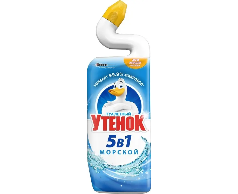 Toilet duckling liquid toilet bowl cleaner. Thanks to the unique shape of the bottle neck, the Dressing Duckling better gets into hard-to-reach places where bacteria accumulate under the rim of the toilet bowl. Deeply cleans from plaque and rust, kills 99.9% of microbes, economical dosage, eliminates unpleasant odors. Effective even under water, changes color during cleansing.
