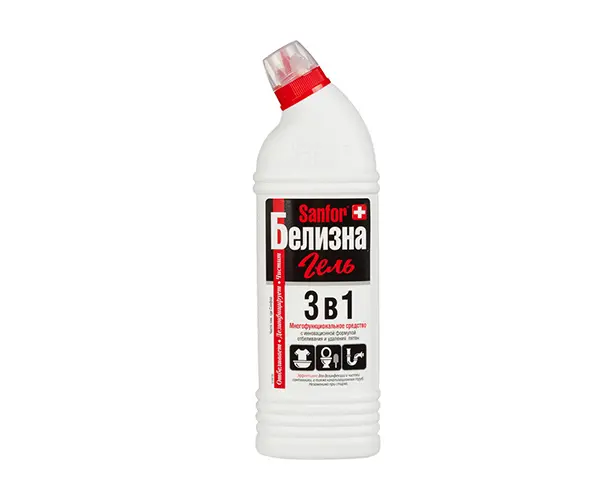 Sanfor 3 in 1 is a special bleach and stain remover. Due to its complex action, it is indispensable for both washing, disinfection and cleaning of plumbing and pipes. The multifunctional product whitens and cleans: bathrooms, sinks, toilets, sewers, floors, tiles.