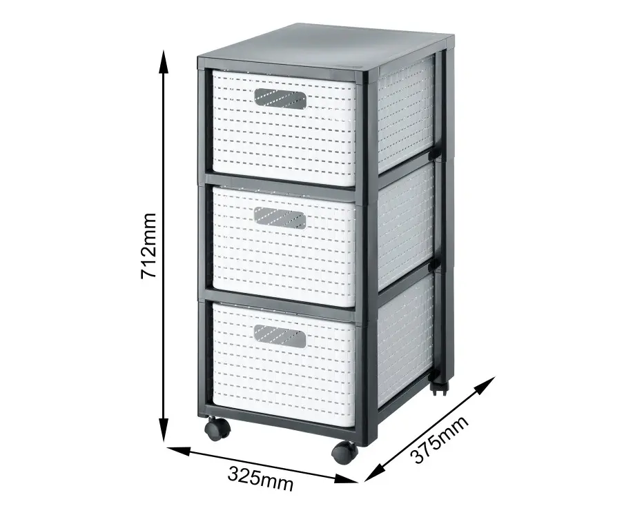 Chest of drawers Rotho 3 x A4 with wheels COUNTRY anthracite white