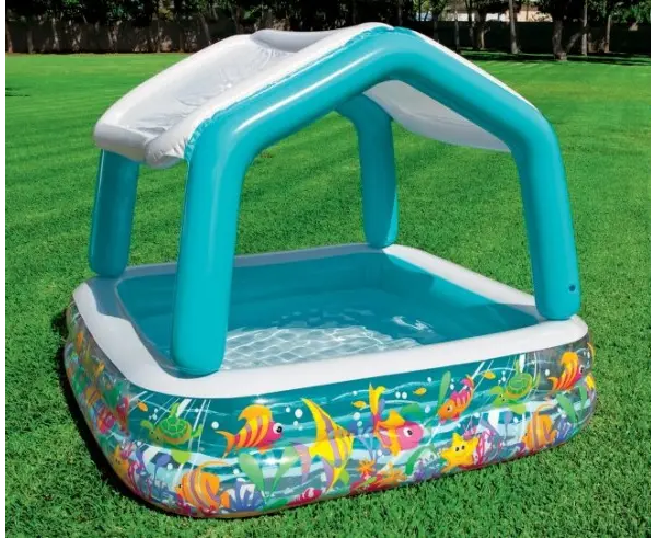 The Intex Sun Shade Inflatable Pool 57470 is an excellent choice for children's swimming and fun water activities outdoors. This fantastic inflatable pool features a removable sunshade that effectively protects against direct sunlight, ensuring a comfortable and safe play environment. This pool is incredibly easy and quick to inflate and set up, requiring no special tools. Its convenience makes it perfect for travel and family outings. Constructed from durable, high-quality materials, the Intex Sun Shade 57470 is built to last, promising years of enjoyable use.