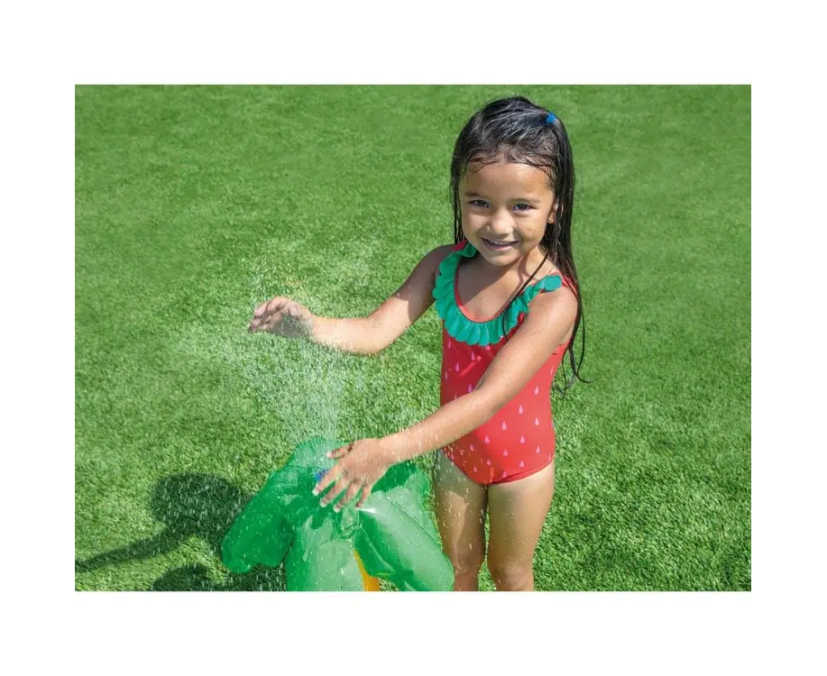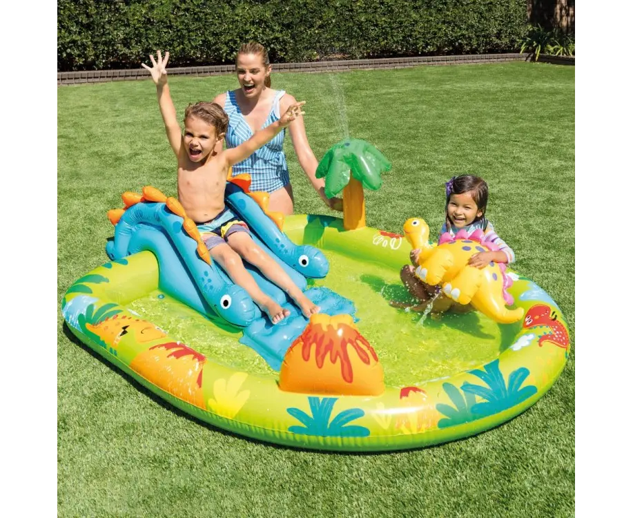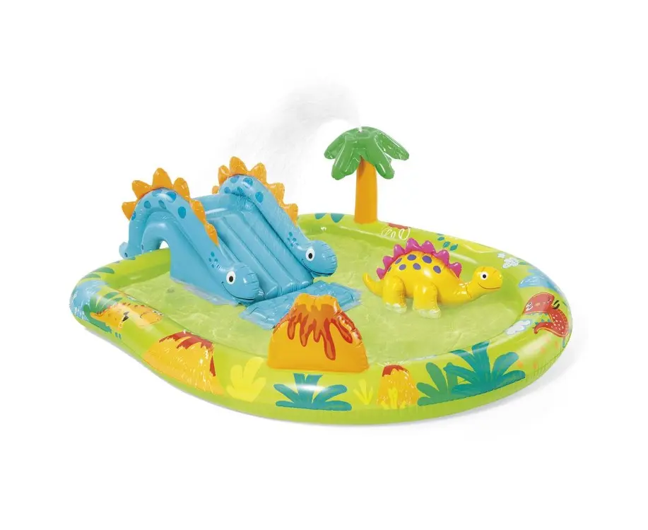 Perfect fun for kids ages 2 and up. An inflatable pool, a slide and a fountain will not leave children indifferent. The fountain is connected to a water source.