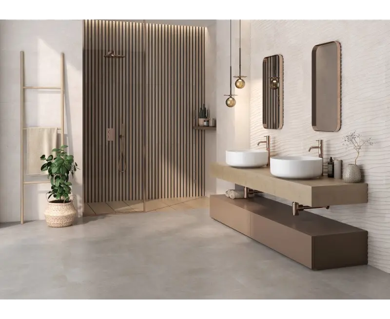 Spanish Porcelanite Halcon ceramic tiles, that makes small spaces seem more spacious by adding a feeling of continuity.
