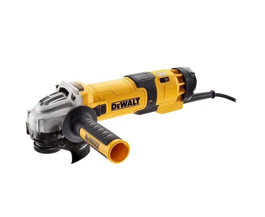 The DEWALT DWE4257 angle grinder can be used for grinding, deburring, and cutting materials. Its low-profile gearbox housing makes it more convenient to work in confined spaces. The model is equipped with features to protect against accidental start-up, as well as overload and motor overheating. The electromechanical safety clutch eliminates kickback in case of tool jamming. Tool-free guard installation and adjustment. Electronic speed control for material-specific work (five steps). The active dust removal system removes most particles from the airflow passing through the motor and prevents abrasive wear. Powerful motor with increased efficiency and modified gearbox profile design for a wide range of tasks.