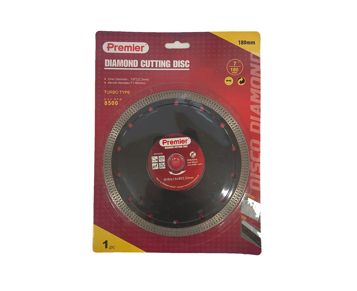 The Premier YF2406-180 universal cutting disc is a versatile and high-performance tool designed for cutting various materials, including metal, steel, and other hard surfaces. With a 180 mm diameter and 1.6 mm thickness, it ensures fast, smooth, and precise cuts with minimal material loss. The 22.23 mm bore fits standard angle grinders, providing stable operation and easy installation. Built from durable, reinforced abrasive materials, this disc offers excellent performance, reduced vibration, and a long service life. Ideal for both professional workshops and home use, it operates safely at speeds up to 8500 rpm.