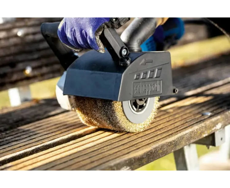 Scheppach 7903800719 is used for cleaning and grinding various surfaces and materials, such as wood, stone or metal.