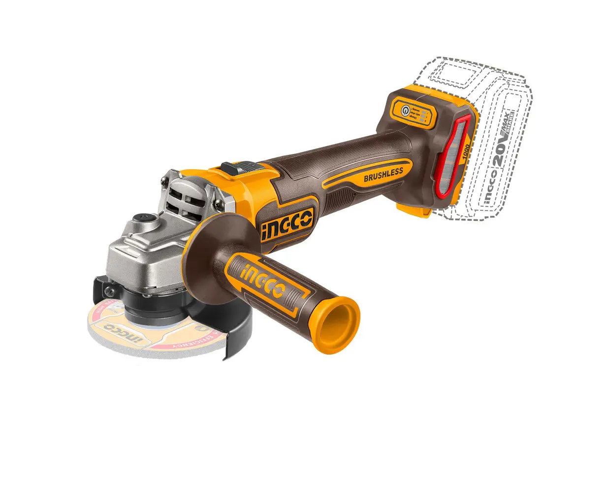 Battery angle grinder Ingco CAGLI271532 (115 mm) delivers powerful 1000 W performance with a brushless motor and adjustable speeds of 3000, 6000, and 9000 rpm. Powered by 2x4Ah 20V batteries, it features an M14 spindle and 22.2 mm bore size for efficient cutting and grinding.