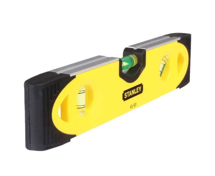 Stanley pro 180 level 600 mm 0-43-511. Durable heavy duty beam aluminium Level with 2 fixed and 1-180º rotating vials. It has shock-absorbing end caps and pipe grooves for use on rounded surfaces.
