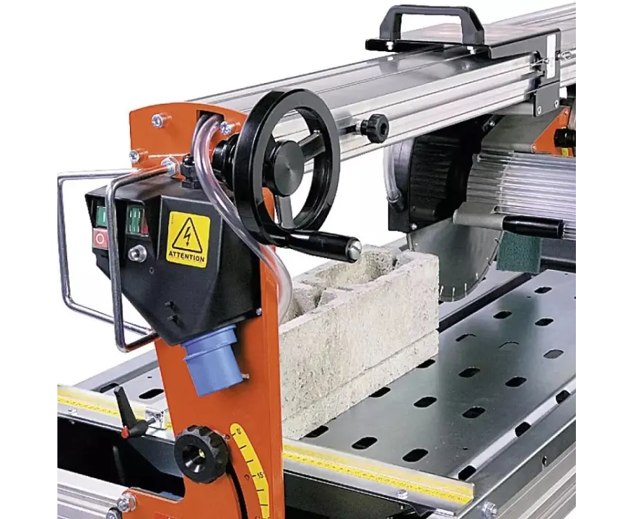 Professional grade tool, the most accurate and smooth movement of the cutting unit. Protection against thermal overloads and current overloads. Water circulation pump - for disc cooling and dust suppression. The laser provides high-precision cutting, and the wheels make it easy to move.