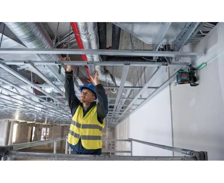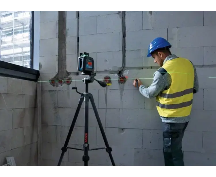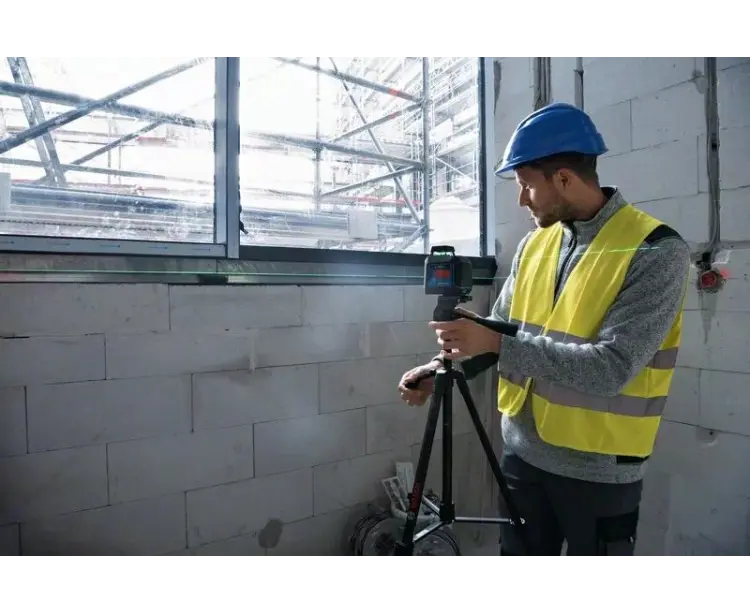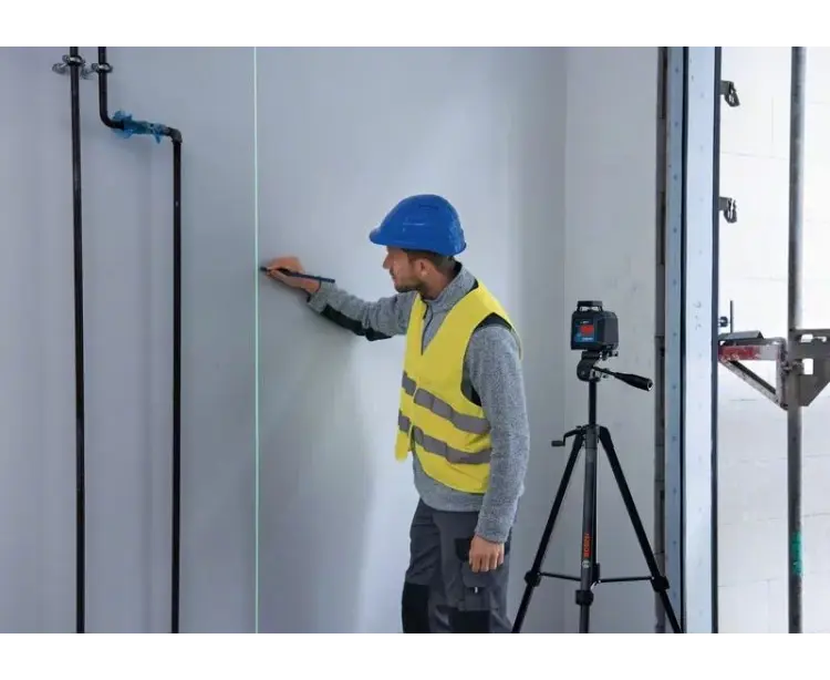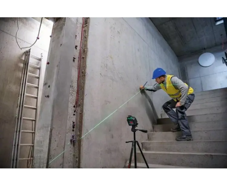 Reliable and easy to use line laser. The tool projects a 360° horizontal line and a vertical line. The green beam is perfectly visible even in bright light.