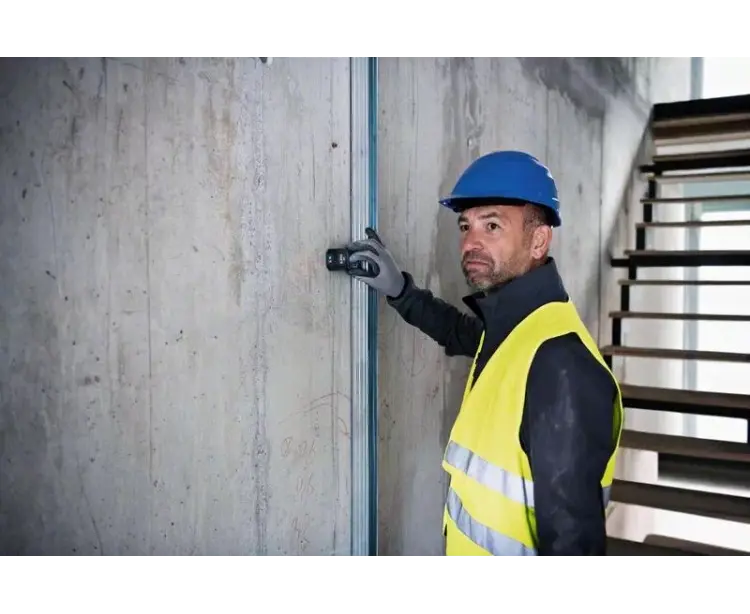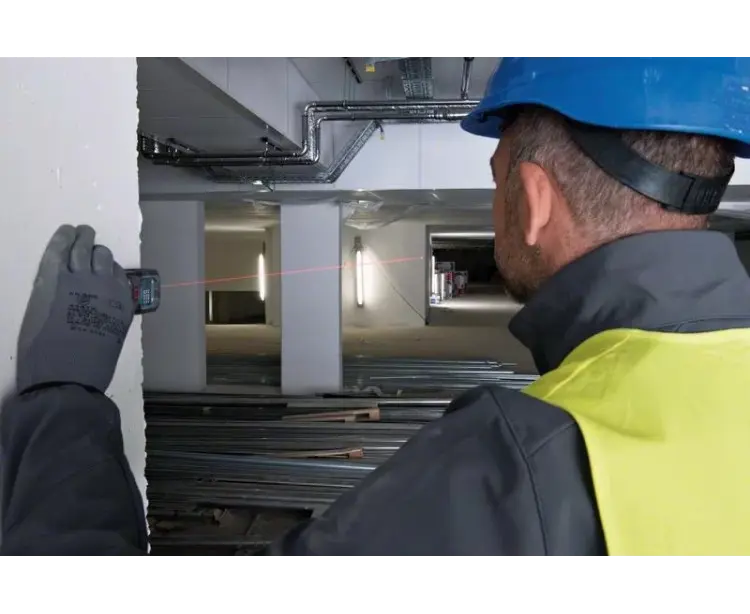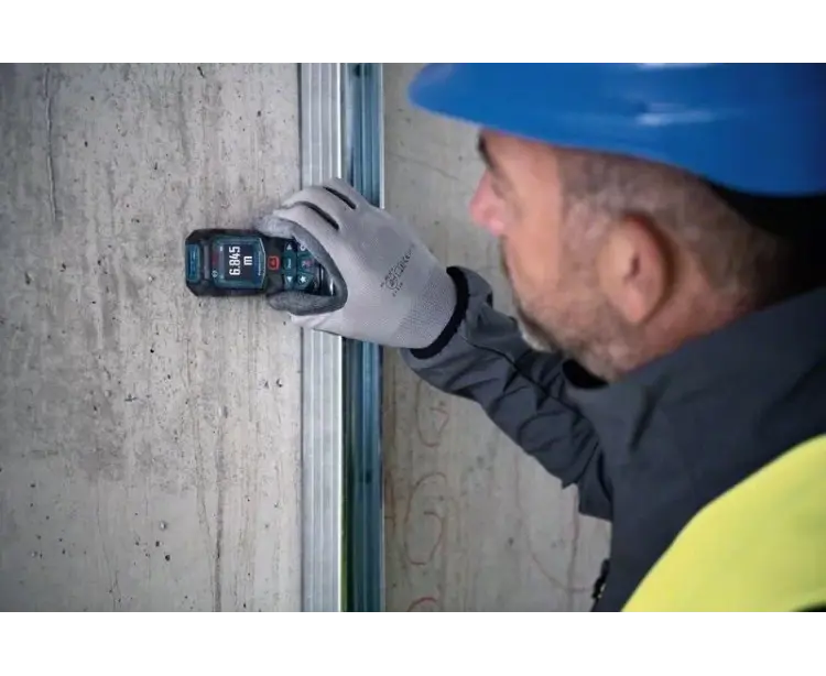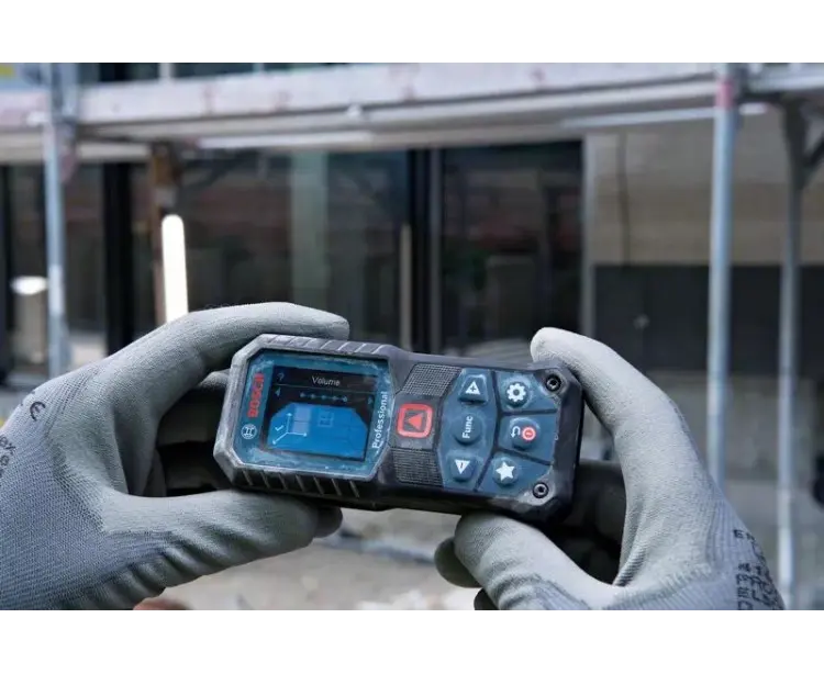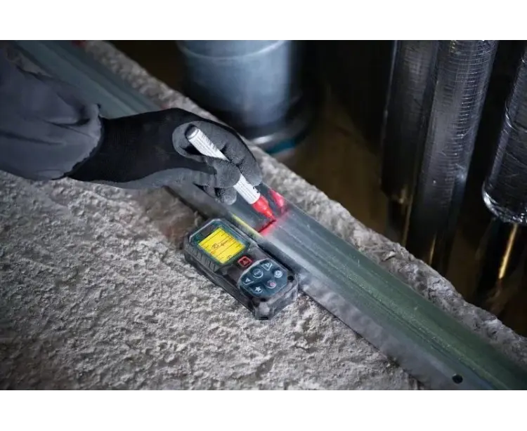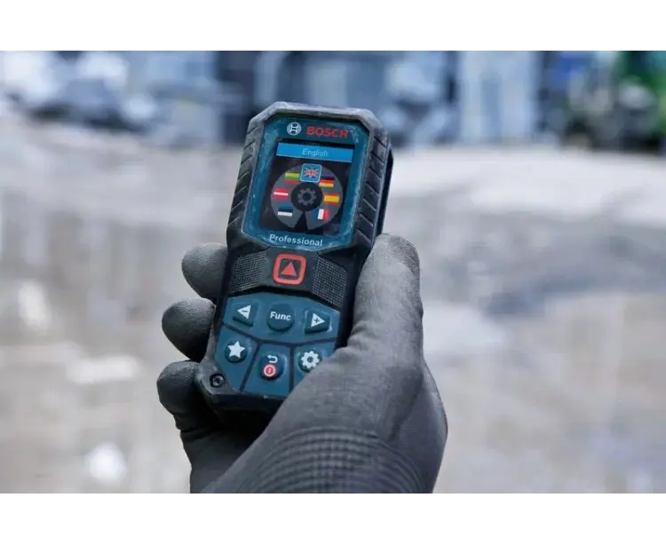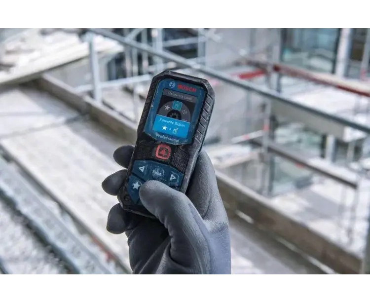 Laser measuring for rough job sites and easily adjustable to individual needs. Ideal for rough construction sites thanks to IP65 certification, shock-absorbing housing, and 1.5-m drop resistance. Customisable favourite button for preferred measurement functions or settings. Intuitive user interface with a Big Numbers Mode for better readability, supporting 30 languages and a new help function.