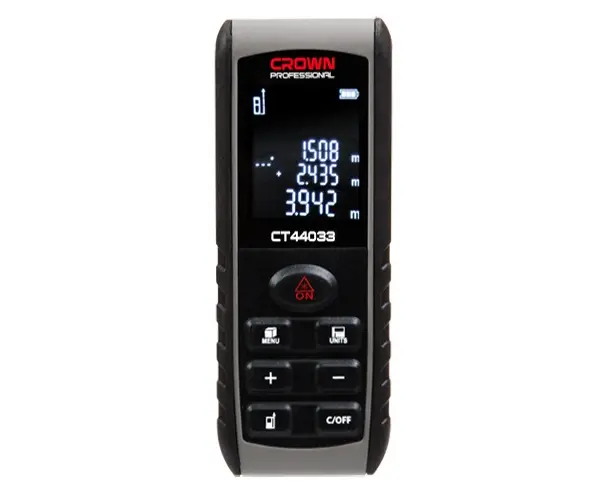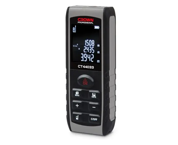 Crown CT44033 has a calculator, memory, and a choice of unit of measure is possible.