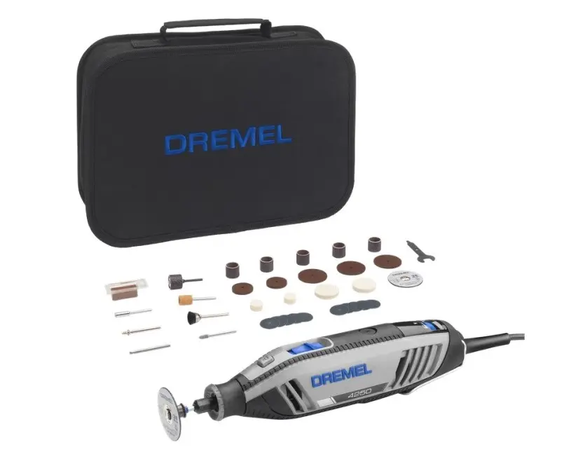 Dremel 4250 combines maximum power with modern ergonomic design. The tool is compatible with all Dremel accessories, which can be changed quickly and easily thanks to the built-in wrench in the EZ Twist handpiece. The kit includes 35 nozzles and a fabric bag. This set is ideal for creative and DIY projects.