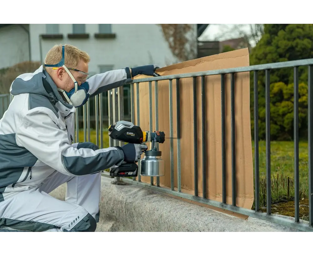 The cordless FinishControl 4000 18V paint spray system impresses with its unlimited freedom of movement when painting small objects and undertaking other painting, repair, and restoration tasks. Thanks to the StandardSpray spray nozzle, the FinishControl 4000 18V is the ideal partner for treating all standard solvent- and water-based paints. Excellent batteries combined with a brushless motor ensure optimal runtime, longer service life, and optimal spray performance.