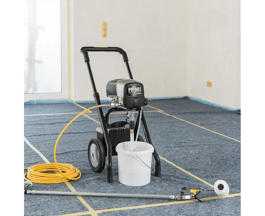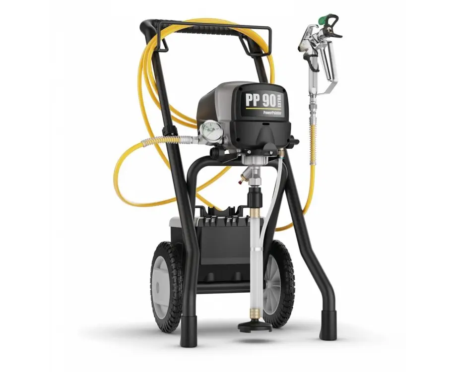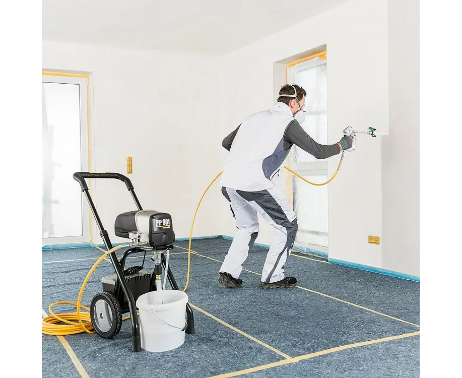 Wagner Power Painter 90 works with innovative HEA technology: low pressure airless spray. Maximum performance control, up to 55% reduction in overspray and increased pump component life. The two-stroke piston pump provides fast and uniform giving of paint. Excellent coating quality, wide range of sprayable materials, direct suction from the original paint container. Built-in tool box and sturdy wheeled trolley for easy movement.