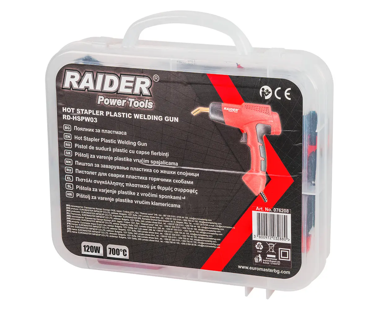 Soldering iron for plastic Raider RD-HSPW03 (120 W) is ideal for welding and repairing plastic surfaces. With a powerful 230 V / 120 W system and 700°C operating temperature, it ensures fast and efficient work. Its ergonomic red design provides comfort during prolonged use, making it suitable for both home and workshop tasks.