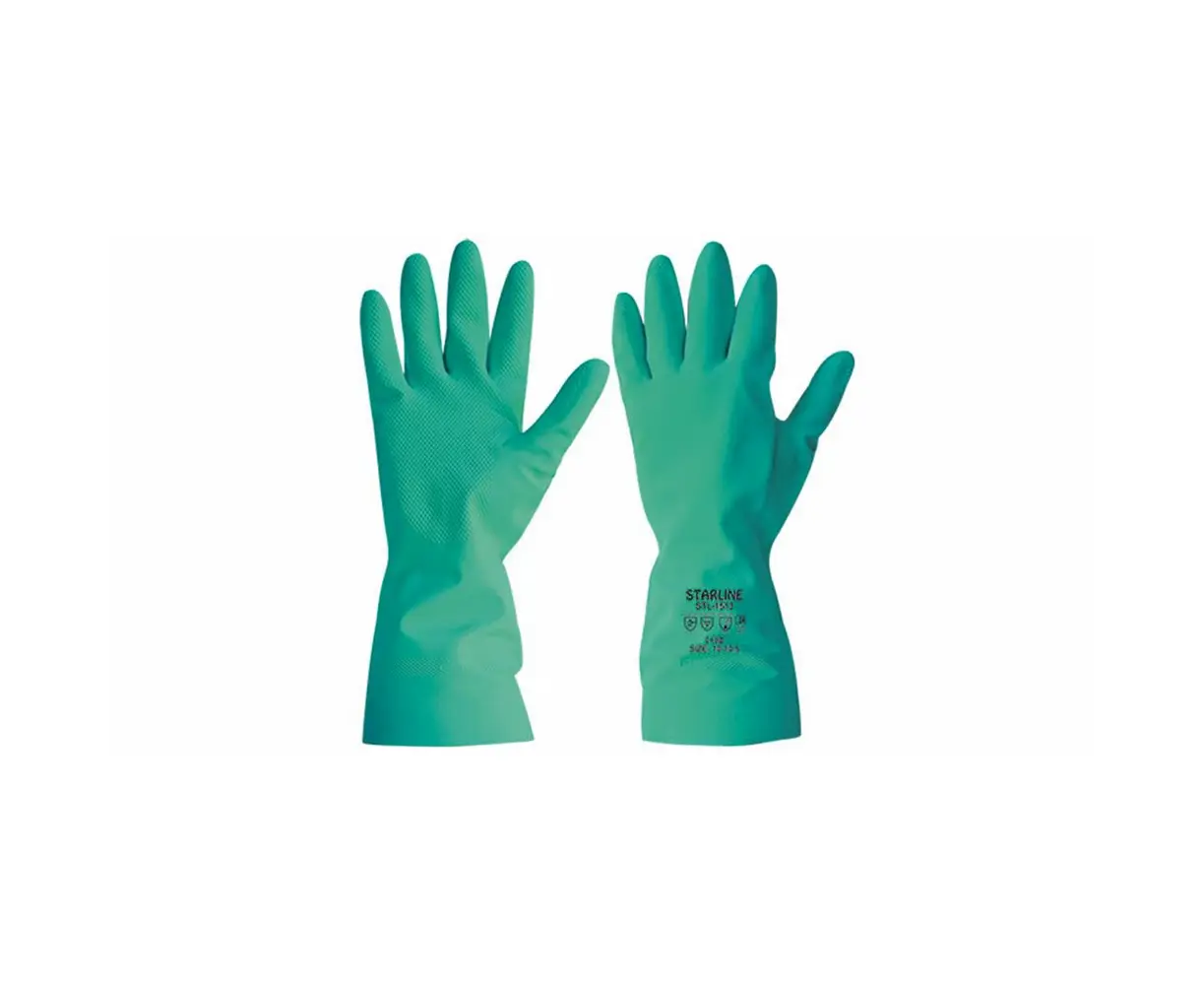 The Starline STL1513 chemical gloves are designed to provide reliable protection when handling chemicals, oils, and solvents. Made from high-quality nitrile, they ensure resistance to chemicals and mechanical risks while remaining flexible and comfortable. These gloves are available in green color and S9 size, making them an ideal choice for professional use in laboratories, industry, and cleaning applications.