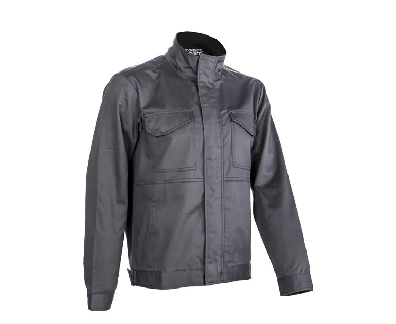 Tight jacket cut with patent adjustable cuffs and adjustable velcro. Wear-resistant material, ideal for heavy industrial use. Two side pockets with vertical slits for easy access.