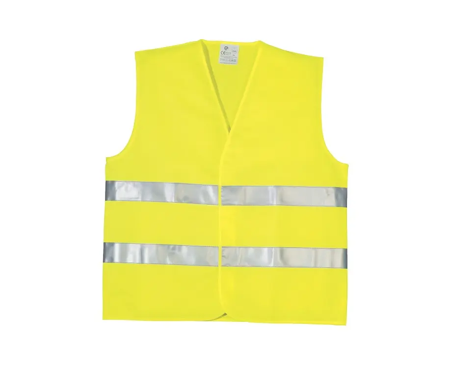 Signal waistcoat with reflective strips provides visibility in low-light conditions.