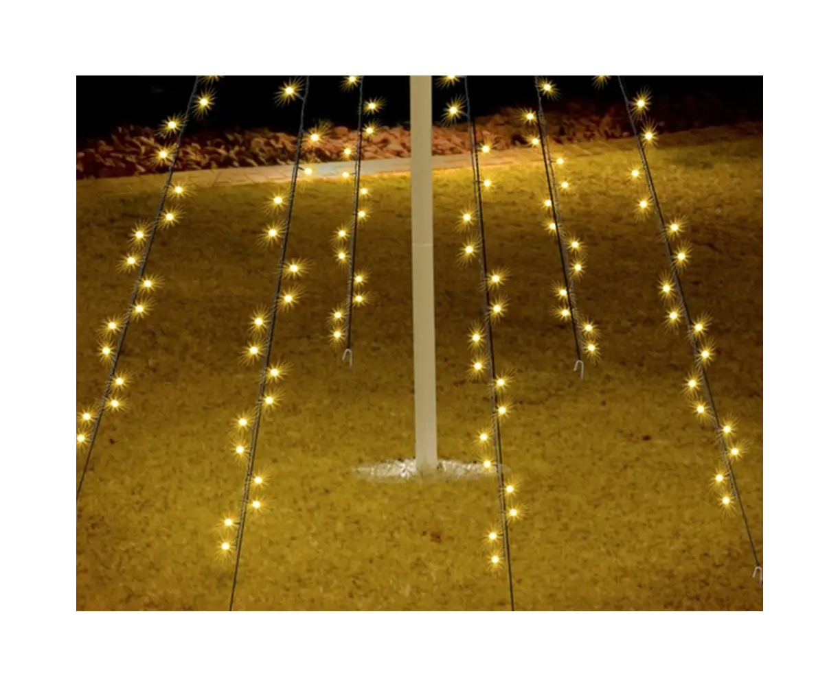 ამ ზღაპრულ ნათურებს აქვთ ელეგანტური და მომაჯადოებელი დიზაინი, რომელიც შექმნილია ნაძვის ხის ან სხვა საახალწლო დეკორაციების გასაფორმებლად. განათება შედგება 6 ძაფისგან, თითოეული დაახლოებით 2 მეტრის სიგრძისაა. ყოველ ძაფზე განთავსებულია 20 თბილი თეთრი LED ნათურა, რაც ქმნის მყუდრო და საახალწლო ატმოსფეროს. LED ნათურების მანძილი ერთმანეთთან დაახლოებით 10 სმ-ია, რაც უზრუნველყოფს თანაბარი და მბრწყინავი შუქის გავრცელებას. იდეალურია როგორც შიდა, ასევე გარე გამოყენებისთვის, რადგან მისი თბილი თეთრი შუქი შექმნის სიმყუდროვესა და ჯადოსნურ ეფექტს.