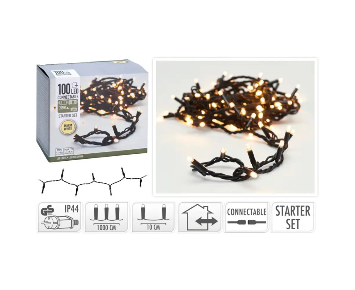 გირლანდა საახალწლო START 100LED WARM WHITE IP44 230V თეთრი