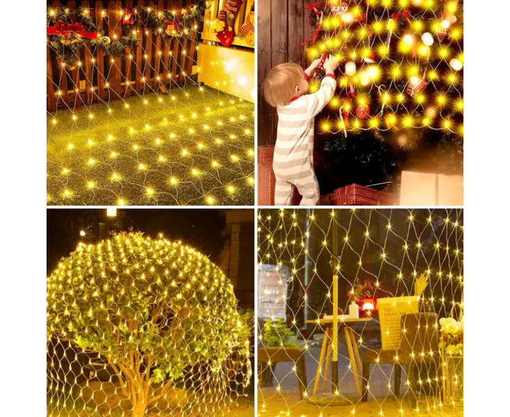 მისი თბილი LED ნათურები ქმნის სასიამოვნო, ზღაპრულ ატმოსფეროს და ერთნაირად ეფექტურად გამოიყურება კედლებზე, აივანზე, ფანჯარზე, ბაღის ბუჩქებზე ან ნაძვის ხეზე. ბადეს ფორმა უზრუნველყოფს განათების თანაბარ განაწილებას, რაც დეკორს მეტად მოცულობითსა და შთამბეჭდავს ხდის.